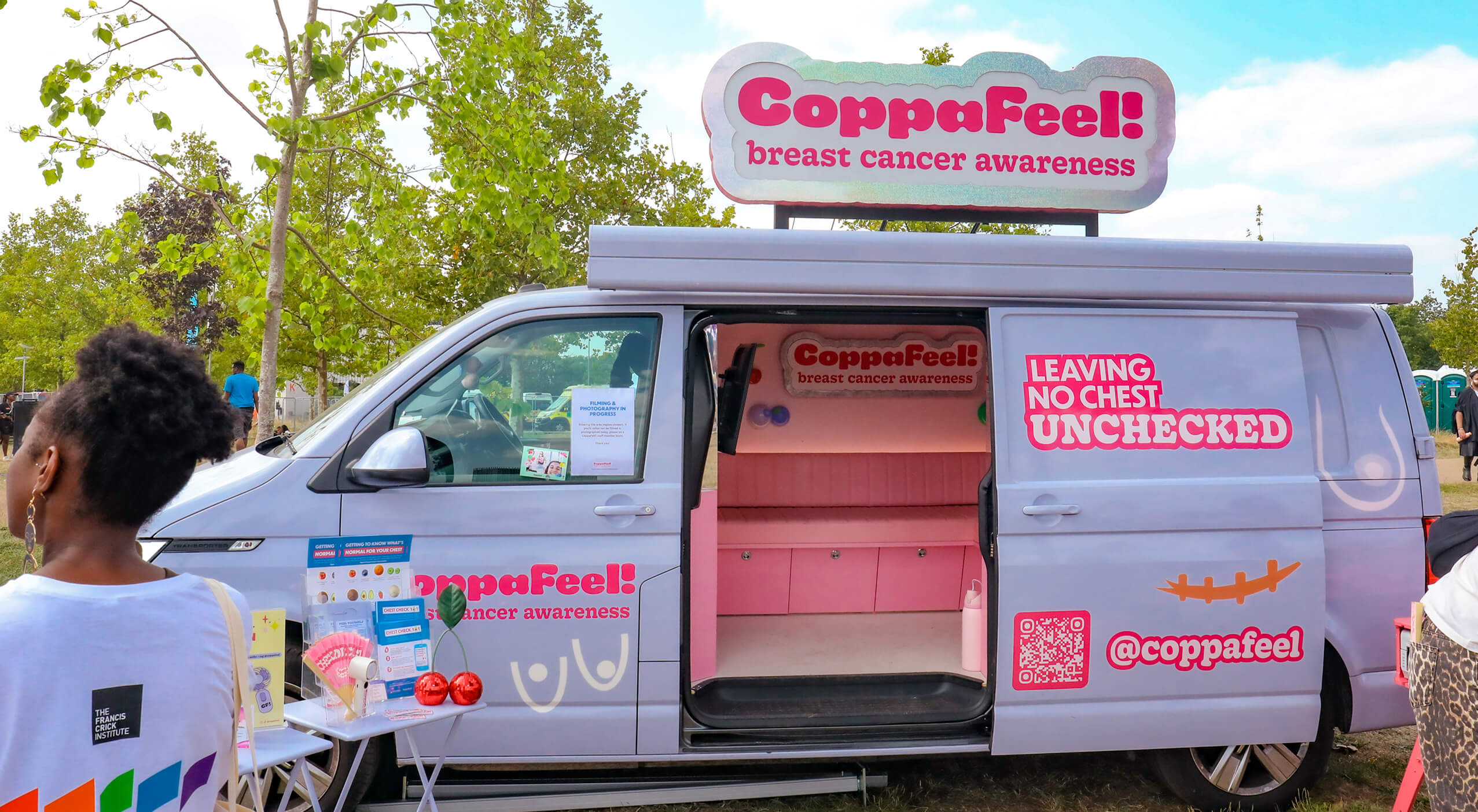 Alongside the campaign content, we designed a new wrap for CoppaFeel!’s outreach van. This was a key part of their in-person activity at events, school visits and the charity’s annual festival.