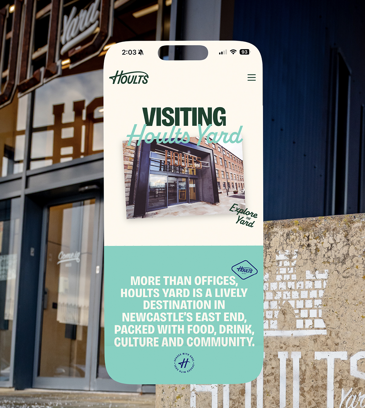 The resulting direction balances heritage with energy. It draws on Hoults’ industrial past while introducing a bold, contemporary edge that reflects the creative community it now supports. The brand feels established yet forward-looking, rooted in place but built to evolve.